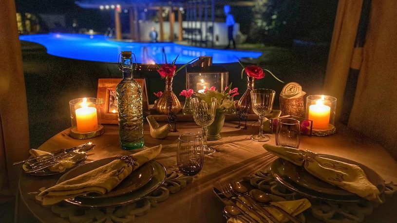 For a minimum of 4 guests, we set up your dining space amidst a wild Fig grove with a waterfall to one side. Our butler will pamper you and our chef will whip up a curated 4-course meal. Enjoy a bottle of wine each and a mixologist’s special.
